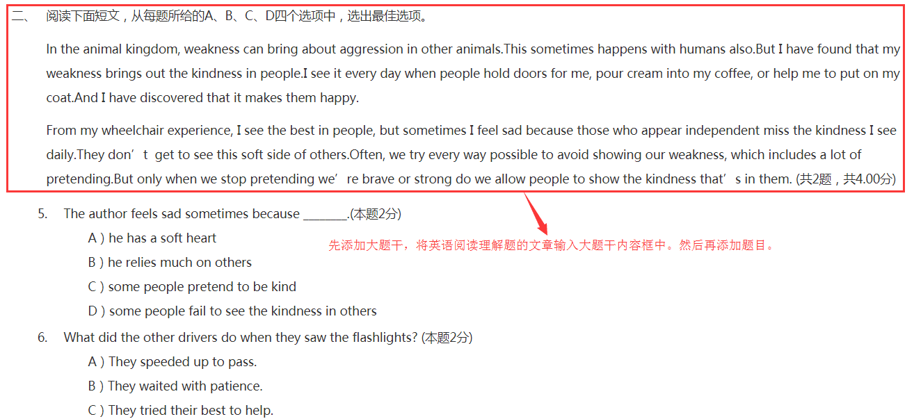大题干是一种特殊的标记,常用来对试卷中的题目进行分类,